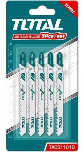 set de 5 hojas para sierra caladora de la marca Total, diseñadas específicamente para cortar madera